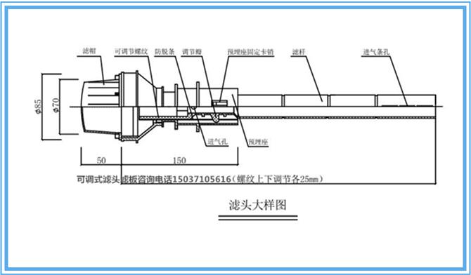 濾頭通過(guò)濾桿上絲扣安裝在固定濾桿上,濾桿和固定環(huán)之間安裝墊片。